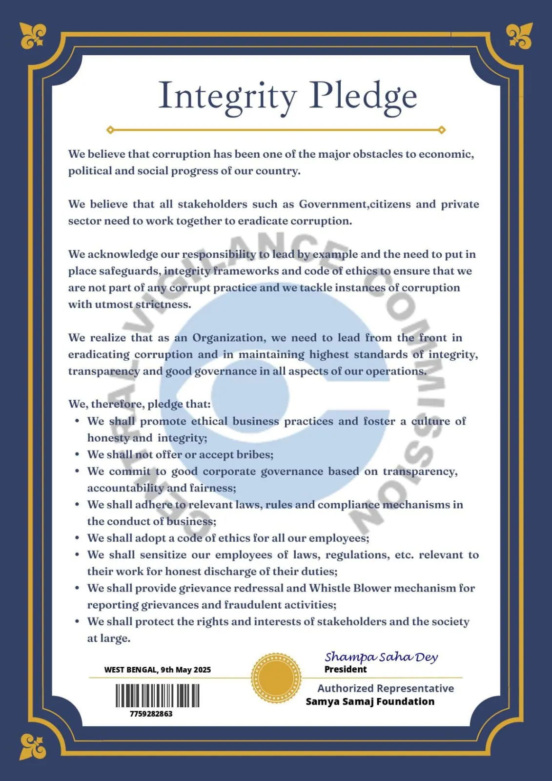 Samya Samaj Foundation is a nationally recognized, ISO 9001:2015 certified and MSME-authorized Non-Profit Public Charitable Trust, operating under the Indian Trust Act 1882 (Deed No.: IV-190200467/2025). We are officially registered with the Government of India through NITI Aayog (ID No: WB/2025/0602329), ensuring full transparency, governance, and accountability in all our charitable operations.