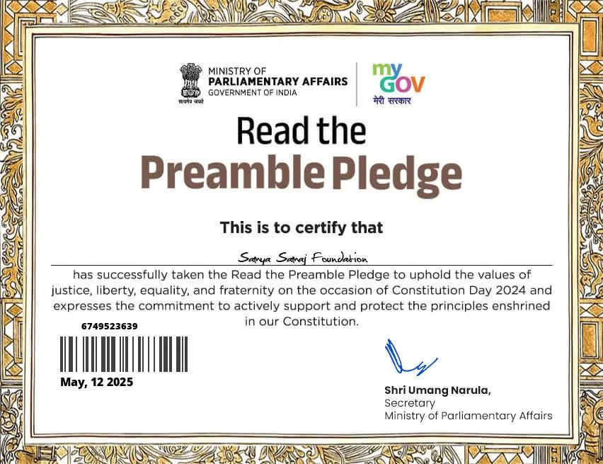 ✅ Join us in our mission to build a society that is fair, inclusive, and sustainable — a truly equitable SAMYA SAMAJ.